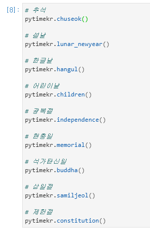 파이썬으로 공휴일 날짜 구하기 pytimekr