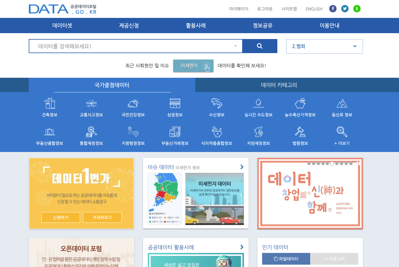 먼저 공공데이터포털 https://www.data.go.kr/ 에 접속합니다.